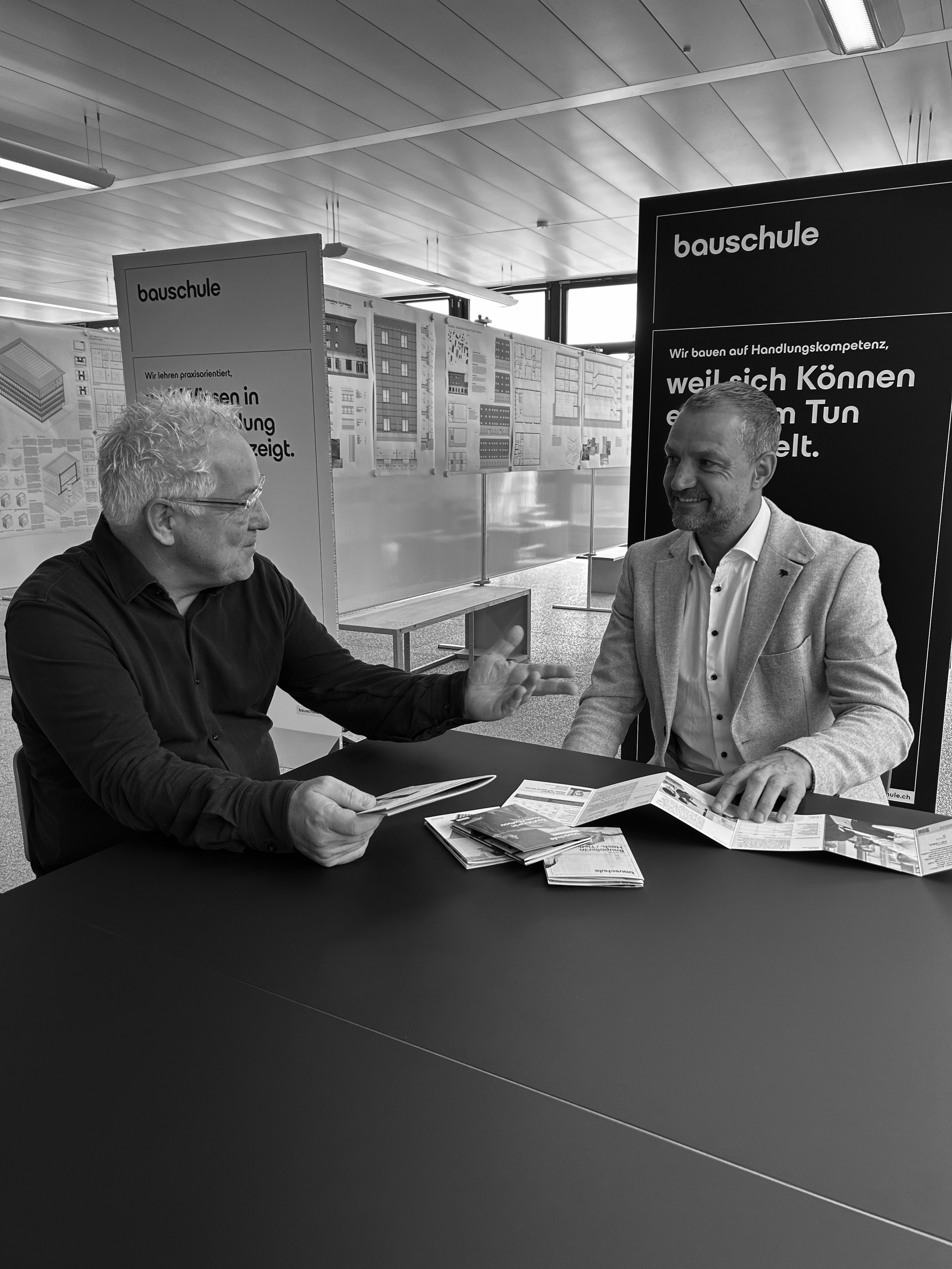 Die Bauwelt steht nie still – sie erfordert Fachwissen, Kreativität und den Mut, neue Wege zu gehen. An der Bauschule bereitest du dich auf eine Zukunft vor, in der du den Wandel aktiv mitgestaltest. Unser praxisnahes Ausbildungsangebot vermittelt nicht nur technisches Know-how, sondern fördert auch Führungsqualitäten und Handlungskompetenz. Ob Bauleitung, Planung oder Bau- und Unternehmensführung – mit uns setzt du ein starkes Fundament für deine Karriere. Du wirst Teil eines Netzwerks, das Wissen teilt, Impulse setzt und das Bauwesen weiterentwickelt. Gemeinsam schaffen wir den inspirierenden Raum für Lernen, Austausch und Fortschritt.